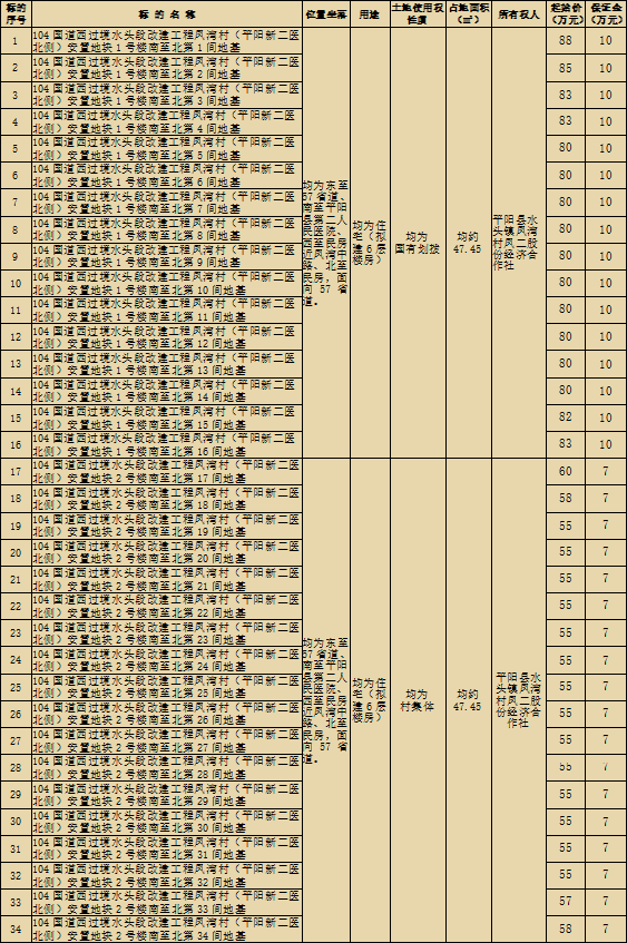 1、本次公开拍卖每个标的所有权均属于平阳县水头镇凤湾村凤二股份经济合作社。