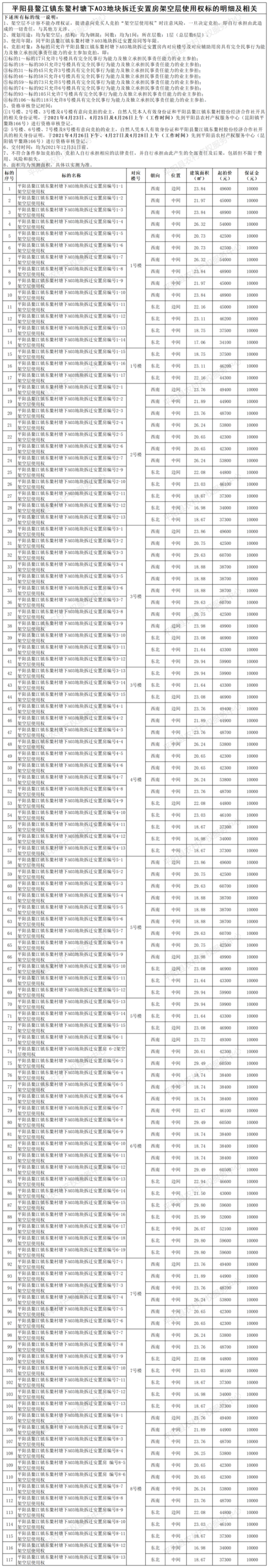 受委托,定于2021年4月29日10时至2021年4月30日10时(延时除外),在淘宝网资产处置网络平台上(网址:https://zc-paimai.taobao.com/;户名:温州八方拍卖有限公司)对平阳县鳌江镇东鳌村塘下A03地块拆迁安置房架空层使用权转让(共117个标的)进行公开拍卖(面积均为预测面积,最终以实测为准),现公告如下: